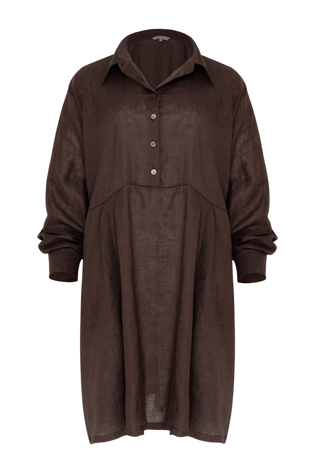 The Big Day Shirt defines Summer cool with its oversized silhouette and roll-up sleeves, loose yet still showing exquisite tailored details. Shell buttons, front pleats and a side pocket blend utility with flair. Whether worn as a dress or a shirt, this summer essential offers endless styling possibilities for a lover of linen.