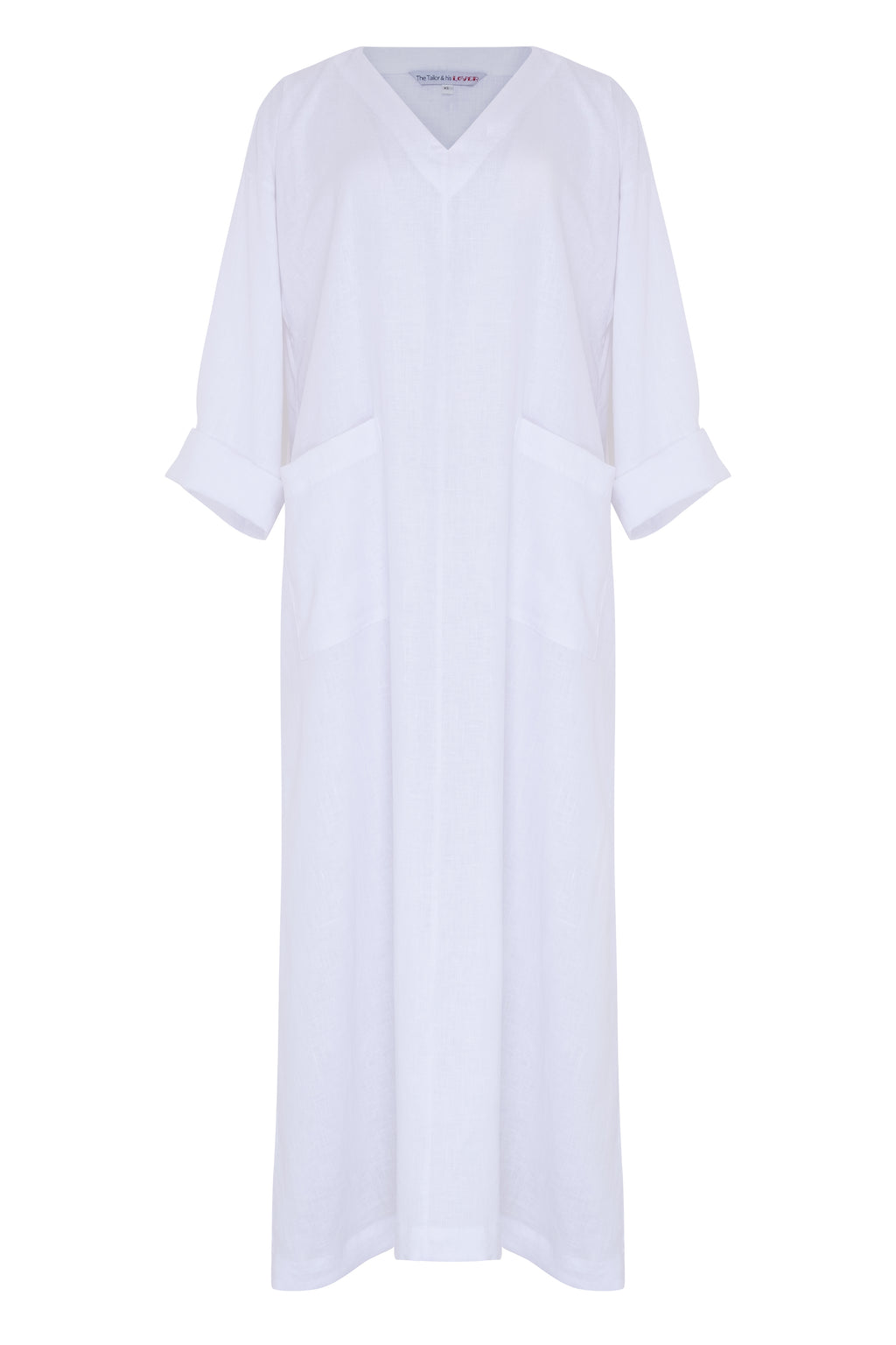 The Sun Frock redefines summer dressing with its loose, luxury linen fit and bold deep hem. Featuring an interfaced V-neck, roll sleeves, and practical front pockets, this dress combines edgy design with effortless comfort. Whether you dress it up to turn heads or throw it on for a confident, casual look, the Sun Frock is your fearless go-to for every summer occasion.