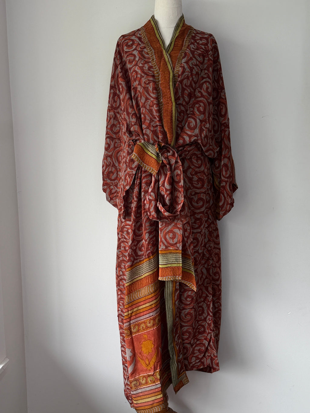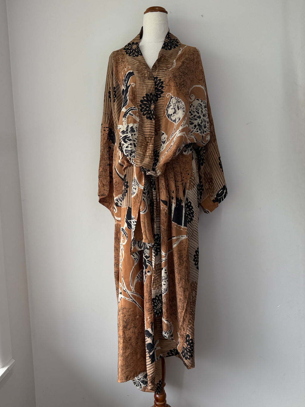 Vintage silk crepe in a loose styled kimono, wear anywhere anytime and look sensational - over jeans, a slip dress or nothing at all. Wear it back to front and tie as a dress. Each piece is as unique as it's heritage - definitely a one off. You will 'know yours' the minute you see it. Select carefully as these are all unique pieces there are no returns.