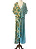 Simple V neck with double side ties to loop, knot or hang loose. Back slit for ease of wear. Brilliant dress for any occasion, dress up or down as needed & ideal for travel.