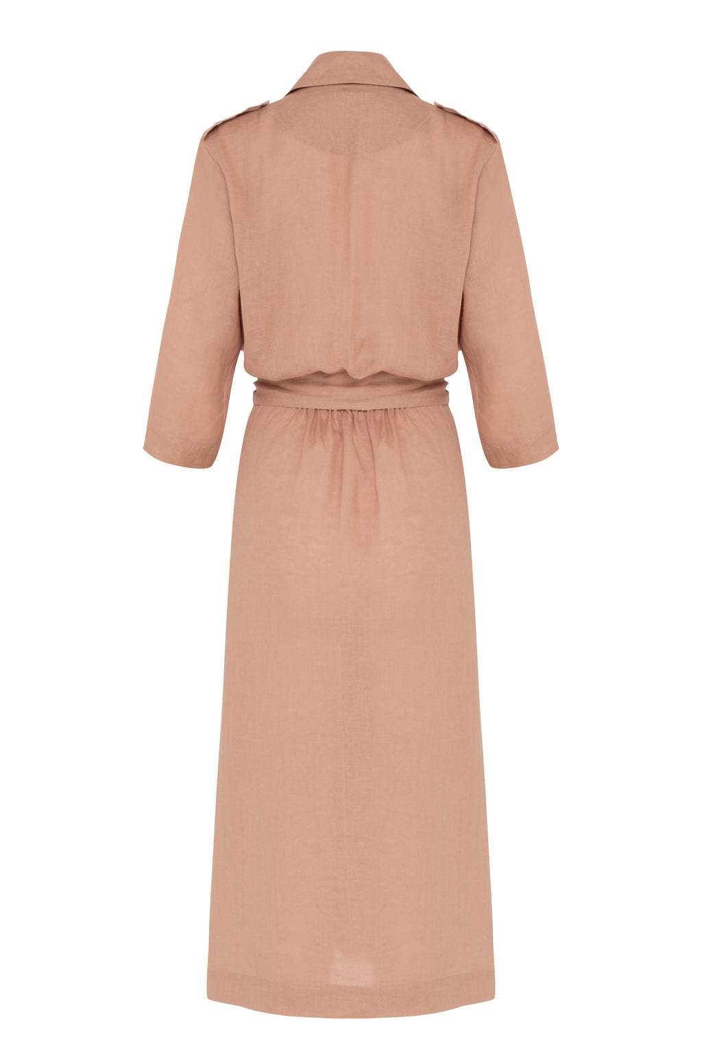 Introducing the Mathilde Dress, the perfect blend of military-inspired style in 100% European flax linen. With stylish epaulettes, deep lapels, & a 3/4 sleeve design, this dress is both sophisticated & practical. A timeless piece that will grace your wardrobe forever.