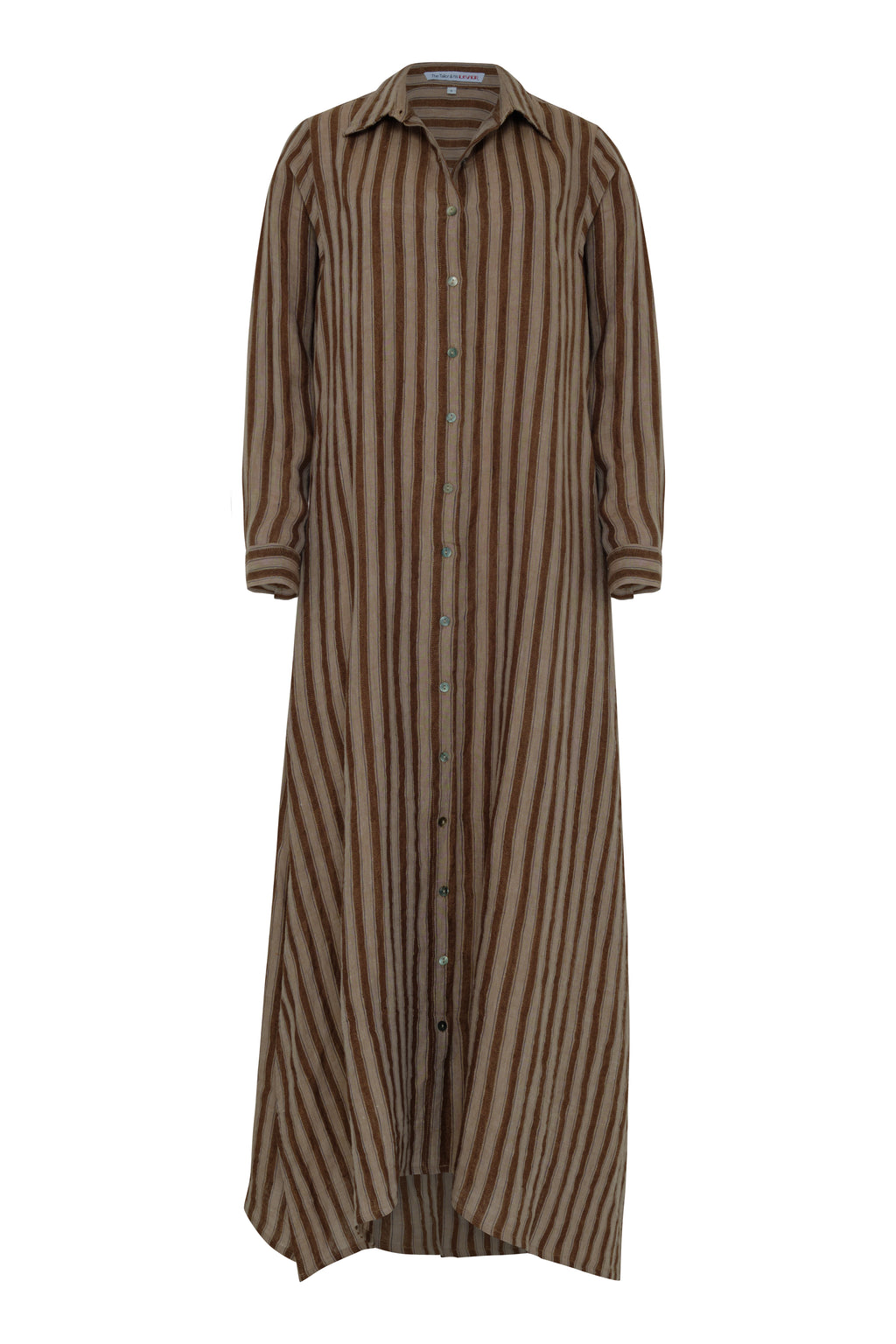 Striped linen, best cut ever seriously flattering on every shape., ankle length, shell buttons, side splits & long sleeves that demand to be rolled , guaranteed to wear on repeat - a true live-in-it dress