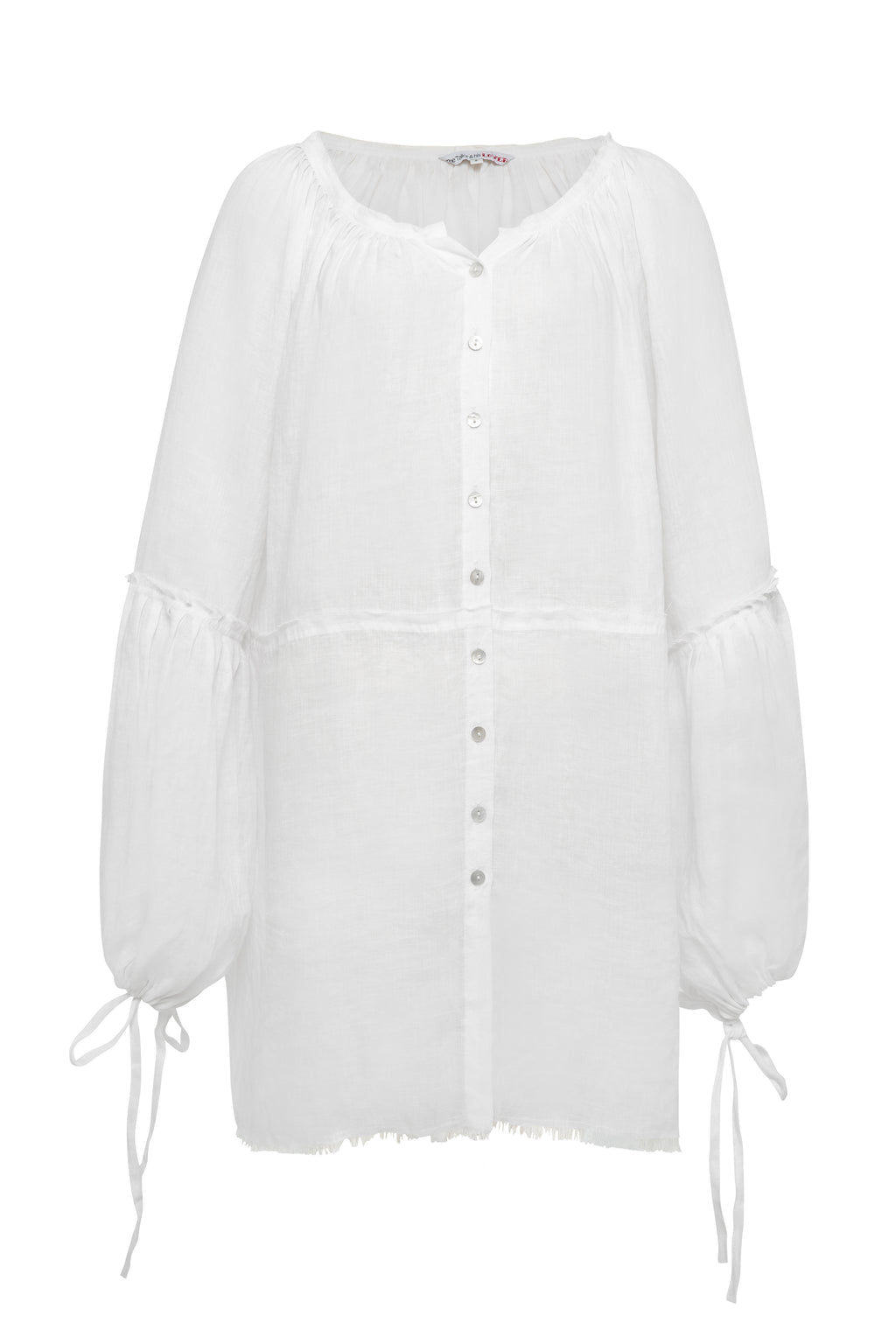 The Amalfi is the perfect wear everywhere, dress up or down kinda top. It's generous & over-sized loose fit coupled with balloon sleeves, tiny shell buttons and our signature detail fraying makes it this year's essential. Extra long to cover whatever, or French tuck for a stylish twist. Available in super light 100% linen gauze or our luxury cotton silks.