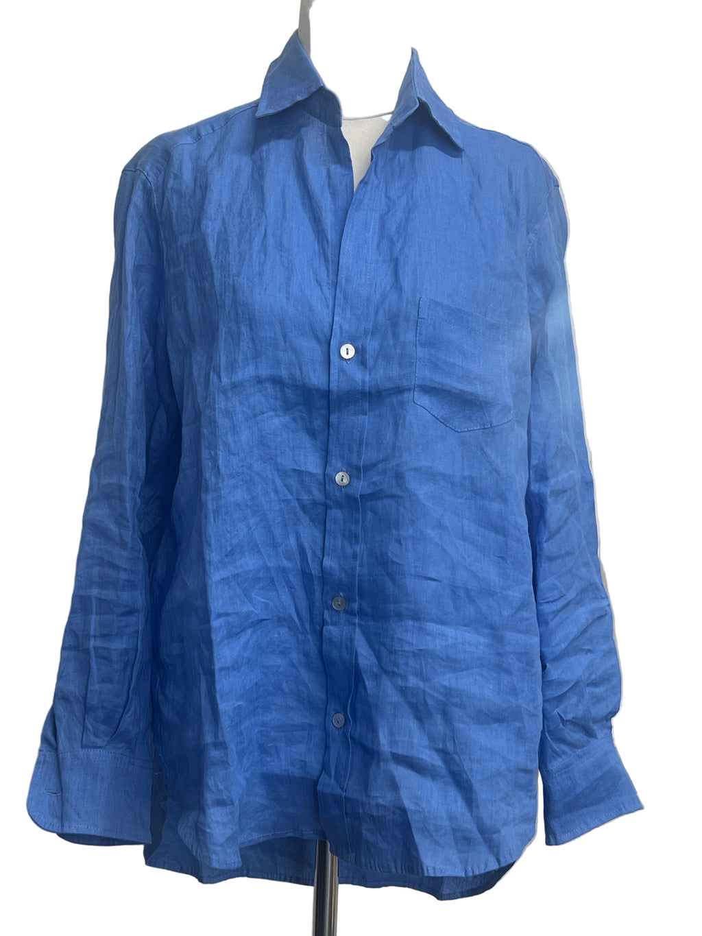 Glorious linen, super styled shirt. Finally give back your boyfriend's and trade up to The Boxy. Loose in all the right places, yet still fitted where it counts. Higher in the front and longer in the back, this shirt is 'love at first sight'. Wear it tucked, tied, buttoned or rolled. A certain fave.